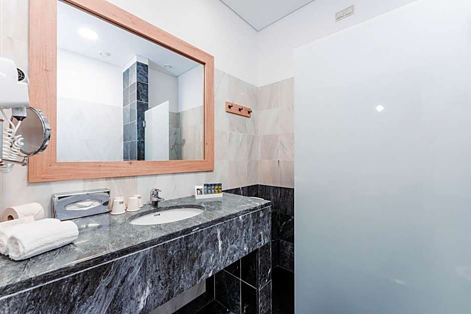 Simply decorated and functional air-conditioned double room. Includes a private bathroom, flat-screen cable TV, work desk, balcony and parking or pool view (subject to availability at time of booking).